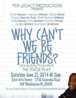 - Why Can’t We Be Friends, (Children/Anti-Bully), 2013 “Inspired by the heartfelt memoir ‘I Believe In Me’ by Young Christopher Hopson, ‘Why Can’t We Be Friends’ navigates the journey of self-discovery and resilience, encouraging audiences to question the barriers that prevent genuine connections.
